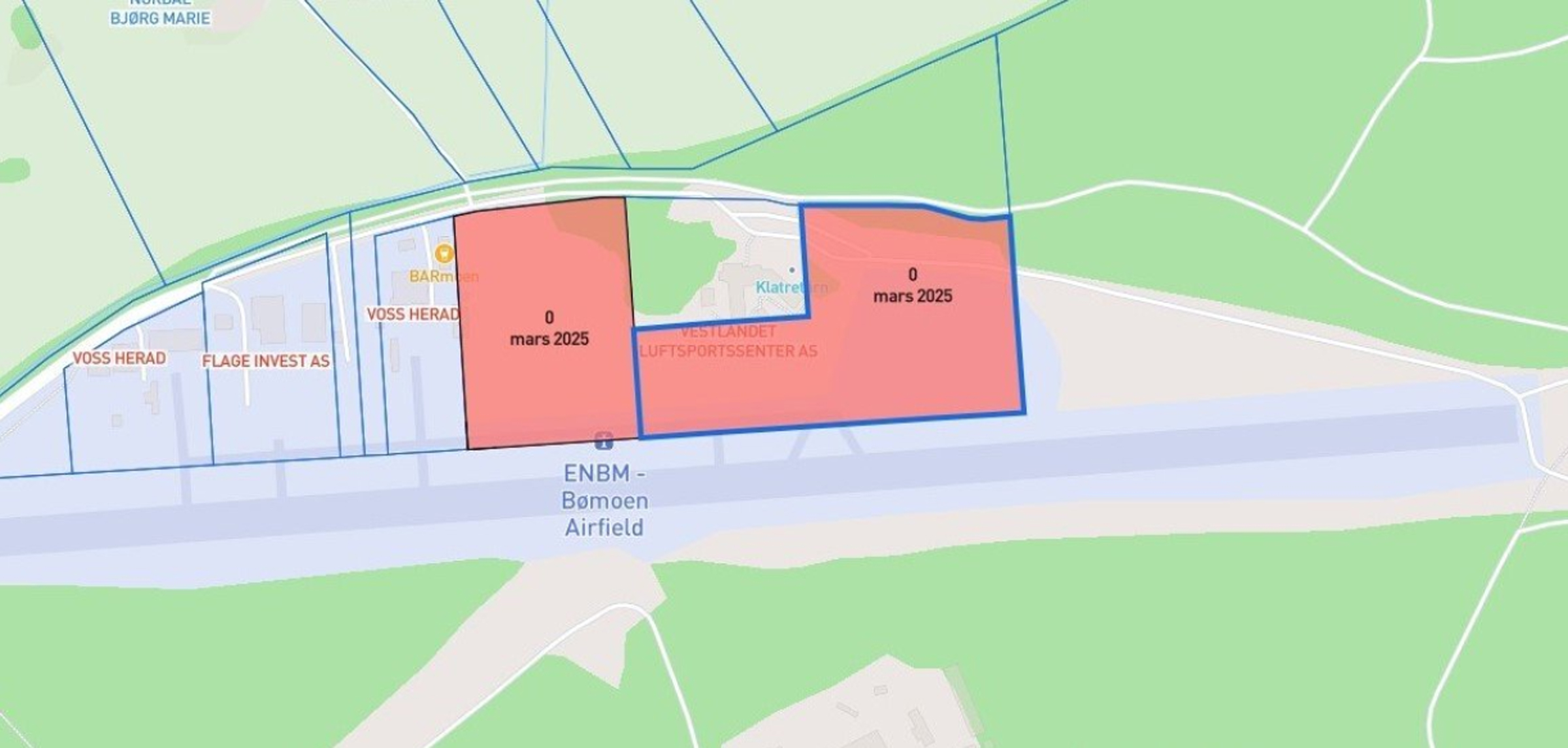 Ifølge tinglyste dokumenter datert 20. mars 2025 gjelder festeavtalen med datterselskapet Vestlandet Luftsportsenter AS to områder som tilsvarer det meste av de eksisterende arealene til fallskjermklubben på Voss, med unntak av selve klubbhuset, hangar og midlertidige bygg oppført av VFSK/Skydive Voss.