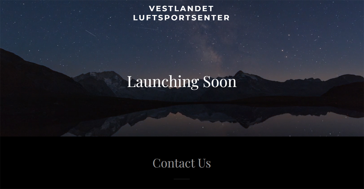 Innholdet på websidene til vestlandetsluftsportsenter.com lar imidlertid vente på seg. En logo med teksten «Launching soon» foran en animert stjernehimmel med fjell og vann sier lite om planene til et nytt luftsportssenter. Teksten/lenken «Contact Us» er inaktiv.