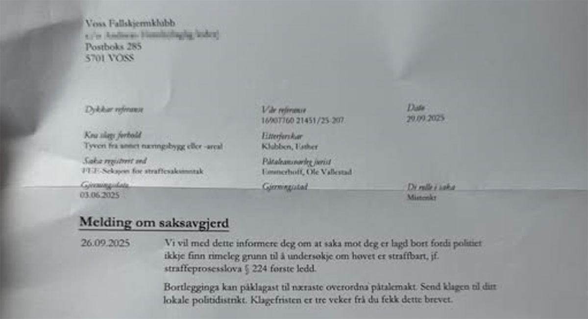 «Voss herad har mottatt et brev fra fallskjermklubben, datert søndag 19. september 2025. Klubben er i en presset situasjon, og vi har derfor prioritert å svare dem så snart som mulig, skriver rådmannen, som ifølge Avisa Hordaland vil svare klubben om få dager.